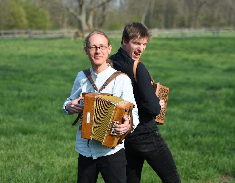 Simon und Johannes fanden sich in den Gängen des Schlosses Colditz beim 1. Silvester*Folk Festival und verzückten die Vorbeigehenden mit ihrem virtuosen Akkordeonspiel. Simon und Johannes beschlossen damals, bis zum nächsten Festival durchzuspielen, und wir beschlossen, ihnen einen Bühnenplatz freizuhalten. So einfach kann das sein, man muss nur die richtigen Veranstalter/-innen kennen 🙂. Seitdem sind wir Fans der ersten Sekunde und freuen uns, sie immer wieder voller Energie sehen und hören zu dürfen!