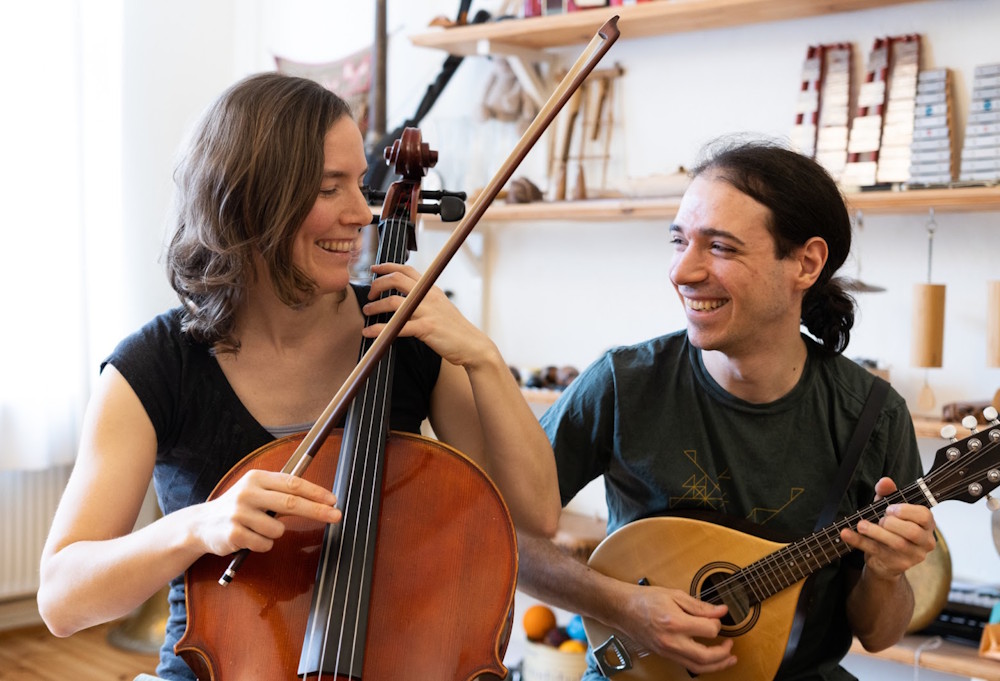 Feather and Fox ist ein belgo-deutsches Duo aus Cello und Mandoline. Christiane und Victor lernten sich während eines Berliner Sommers am Ufer der Spree kennen und reisen seitdem mit ihrer feinen, einfühlsamen Musik durch die europäische Balfolk-Szene. Von Anfang an spielt das Duo für Tänzer*innen und lässt sich von deren Energie inspirieren. Spielerisch und sensibel erkunden sie die klanglichen Möglichkeiten im Zusammenspiel der zwölf Saiten ihrer Instrumente und erschaffen so einen einzigartigen Sound – zugleich federleicht und energiegeladen.